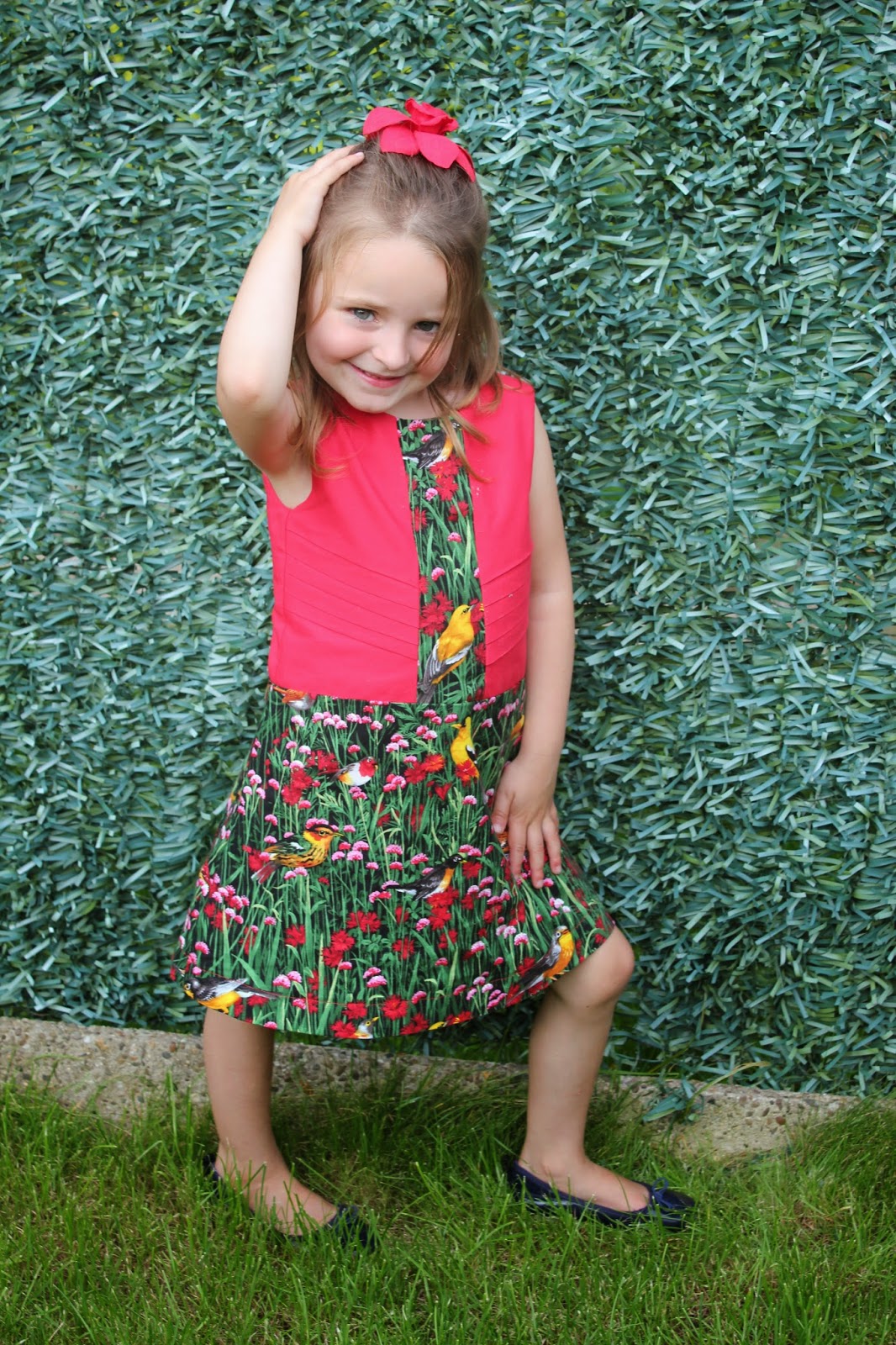 Mijn laatste bericht was al even geleden: mijn rok met vogeltjes. Nu had ik nog stof over om voor dochterlief iets te maken... Toen ik haar vroeg of ik voor een kleedje mocht maken met de rest van de stof, zei ze: "NEEEEEE"... Dus wachtte ik maar ... gelukkig vroeg ze er na een tijdje zelf naar. "Mama, jij ging toch een kleedje maken voor mij?" en mama was zeeeeeeeeeeeer blij, want ik had al een ideetje.